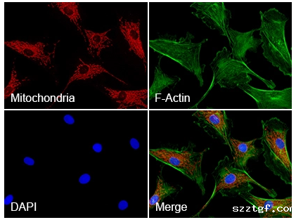 Red: mitochondria, stained with MitoTracker? Red CMXRos;